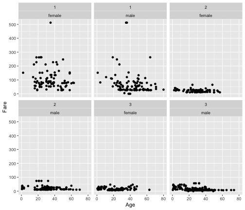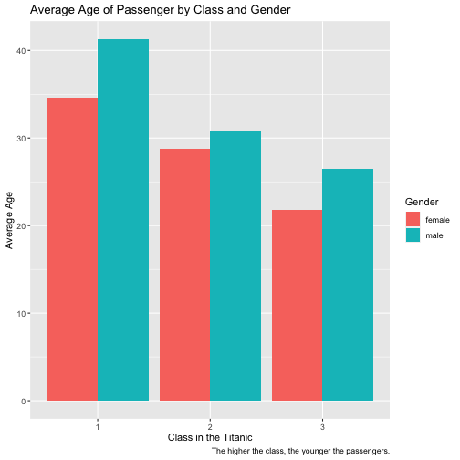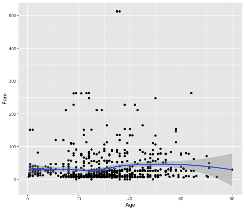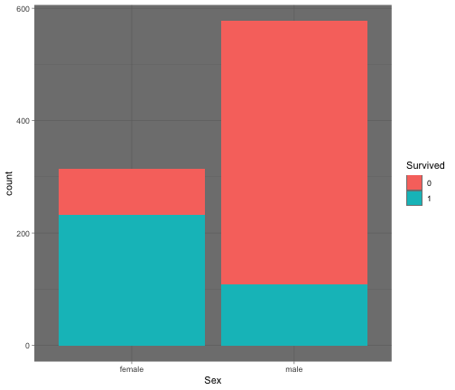 class: center, middle, inverse, title-slide .title[ # Some aspects of ggplot2 - Titanic Version ] --- class: inverse, middle, center class: inverse, middle, center # Combine multiple graphs with the same aes --- ```r library(tidyverse) library(knitr) library(ggplot2) df <- read_csv('../data/titanic.csv') df <- df %>% mutate(Survived = as.character(Survived), Pclass = as.character(Pclass)) ``` --- ```r df %>% ggplot()+ geom_point(mapping=aes(x=Age, y=Fare)) ``` <!-- --> --- ```r df %>% ggplot()+ geom_point(mapping=aes(x=Age, y=Fare))+ geom_smooth(mapping=aes(x=Age, y=Fare)) ``` <!-- --> --- class: inverse, middle, center # Facets --- ```r df %>% ggplot()+ geom_point(mapping=aes(x=Age, y=Fare))+ facet_wrap(~Pclass) ``` <!-- --> --- ```r df %>% ggplot()+ geom_point(mapping=aes(x=Age, y=Fare))+ facet_wrap(~Pclass+Sex) ``` <!-- --> --- class: inverse, middle, center # Position adjustments --- ```r df %>% ggplot()+ geom_bar(mapping=aes(x=Sex, fill=Survived), position = 'dodge') ``` <!-- --> --- ```r df %>% ggplot()+ geom_bar(mapping=aes(x=Sex, fill=Survived), position = 'fill') ``` <!-- --> --- class: inverse, middle, center # geom_bar vs. geom_col --- **geom_bar for one categorical variable** ```r df %>% ggplot()+ geom_bar(mapping=aes(x=Pclass)) ``` <!-- --> --- **geom_col for one categorical variable and one continuous variable** ```r df %>% group_by(Pclass) %>% summarise(average_age=mean(Age, na.rm=TRUE)) %>% ggplot()+ geom_col(mapping=aes(x=Pclass, y=average_age)) ``` <!-- --> --- class: inverse, middle, center # Labels/Title --- ```r df %>% group_by(Pclass, Sex) %>% summarise(average_age=mean(Age, na.rm=TRUE)) %>% ggplot()+ geom_col(mapping=aes(x=Pclass, y=average_age, fill=Sex), position = 'dodge')+ labs(x='Class in the Titanic', y = 'Average Age', fill='Gender', title = 'Average Age of Passenger by Class and Gender', caption = 'The higher the class, the younger the passengers.') ``` --- <!-- --> --- class: inverse, middle, center # Change Themes --- ```r df %>% ggplot()+ geom_bar(mapping=aes(x=Sex, fill=Survived)) ``` <!-- --> --- ```r df %>% ggplot()+ geom_bar(mapping=aes(x=Sex, fill=Survived))+ theme_dark() ``` <!-- --> --- ```r df %>% ggplot()+ geom_bar(mapping=aes(x=Sex, fill=Survived))+ theme_linedraw() ``` <!-- --> --- # More Themes - https://ggplot2.tidyverse.org/reference/ggtheme.html --- **`ggthemes` package** ```r df %>% ggplot()+ geom_point(mapping=aes(x=Age, y=Fare, color=Survived))+ facet_wrap(~Sex) ``` <!-- --> --- **`ggthemes` package** ```r library(ggthemes) df %>% ggplot()+ geom_point(mapping=aes(x=Age, y=Fare, color=Survived))+ facet_wrap(~Sex)+ scale_color_stata() ``` <!-- --> --- **Save plots** ```r gg <- df %>% ggplot()+ geom_bar(mapping=aes(x=Sex, fill=Survived))+ theme_dark() ggsave(filename = 'abc.png', plot = gg) ``` --- class: inverse, middle, center # dplyr + ggplot --- **filter + ggplot** ```r df %>% filter(Age>=13, Age<=19) %>% ggplot()+ geom_bar(mapping=aes(x=Sex, fill=Survived)) ``` <img src="7_viz_titanic_files/figure-html/unnamed-chunk-18-1.png" height="450px" /> --- **group_by + summarise + geom_col** ```r df %>% group_by(Survived, Pclass) %>% summarise(mean_fare = Fare) %>% ggplot()+ geom_col(aes(x=Pclass, y=mean_fare, fill=Survived), position = 'dodge') ``` <img src="7_viz_titanic_files/figure-html/unnamed-chunk-19-1.png" height="400px" />