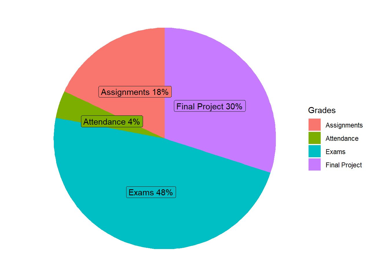 Assignments: The assignments include, but not limited to, solving statistical problems, writing reports about a statistical technique, and presenting statistical analysis on a dataset.