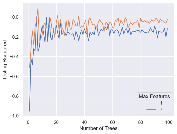 columns=list(['Number of Trees','Max Features','Testing Rsquared']))],