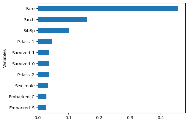 feature_importance = pd.DataFrame({'Variables':x_train.columns[sorted_idx], 'Importance':r1.feature_importances_[sorted_idx]})